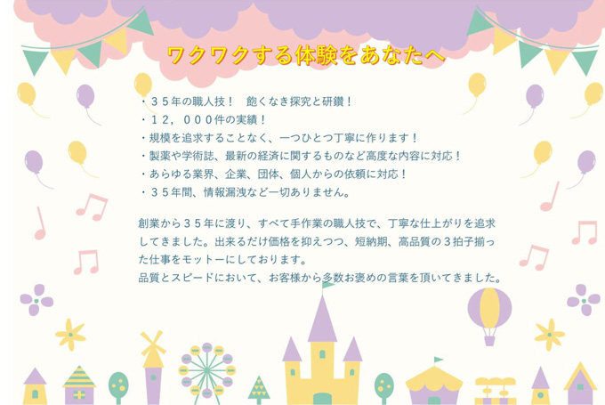 1.高品質ー文字起こし、文字校正とも、スキルのあるスタッフが仕事をする。その後、当社で2校をする。それで高品質な作品ができる。2.短納期ー業界の平均納期より短い納期で、作品を納品できる。3.翻訳会社と共同で、少量の翻訳でも引き受けるので、お客様に喜んでいただいている。